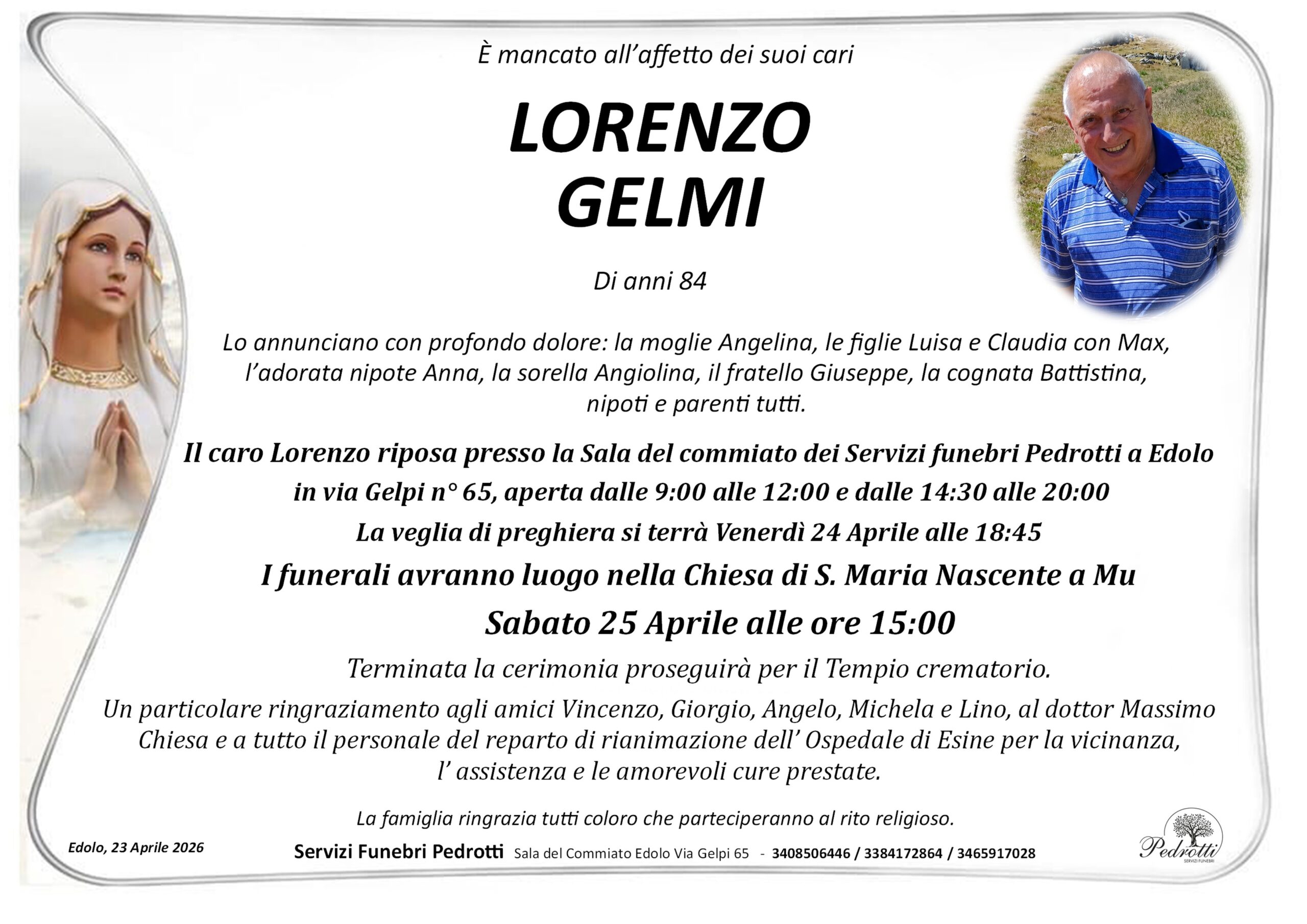Le parole di partecipazione al lutto che saranno lasciate in questo spazio verranno stampate una ad una, imbustate e consegnate alla famiglia al termine della cerimonia funebre. Si consiglia di firmare le condoglianze in calce. L'indirizzo email non sarà invece pubblicato o stampato.